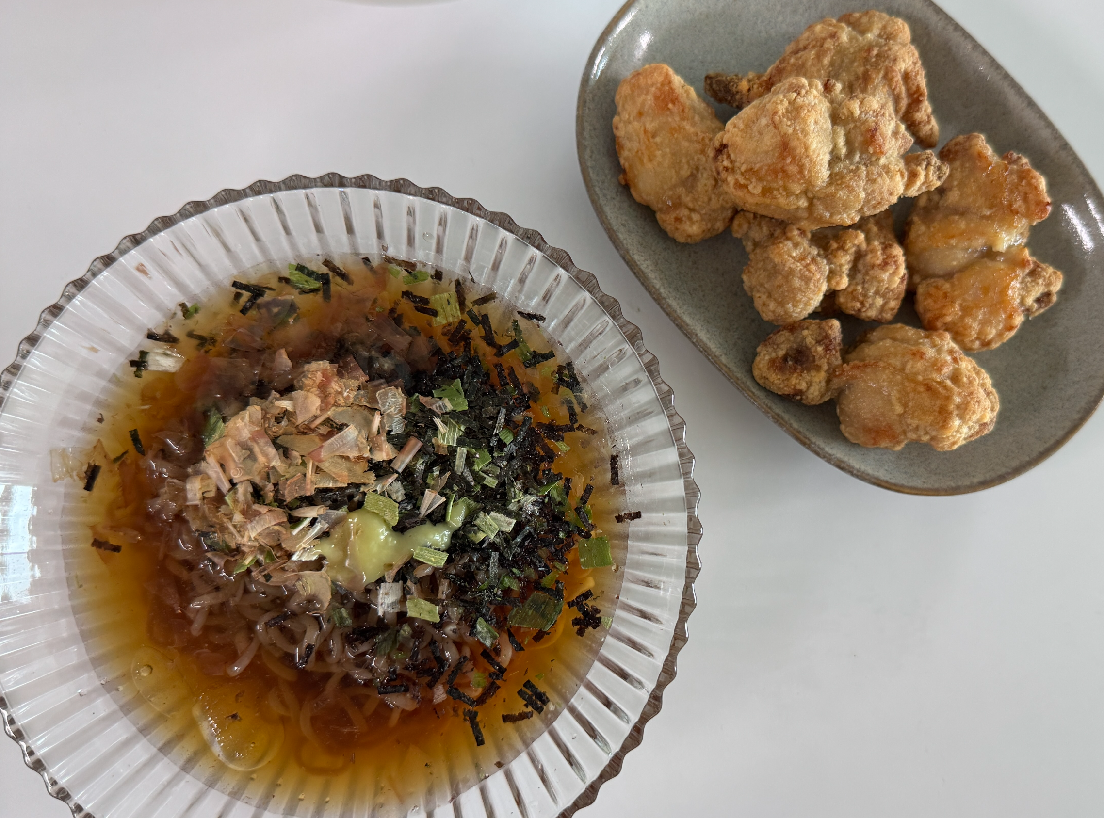 오늘 점심은 메밀소바와 카라아게입니다.